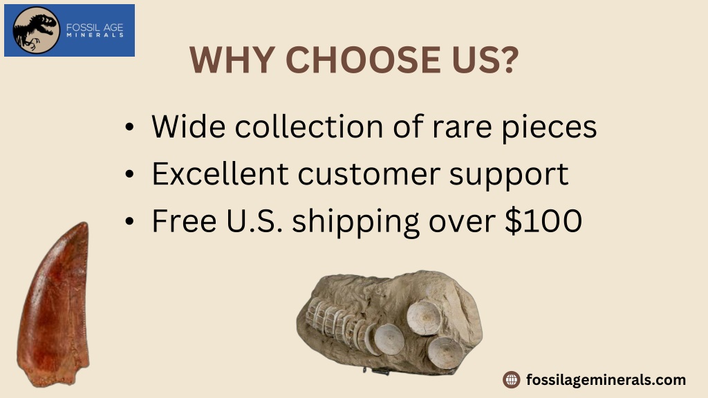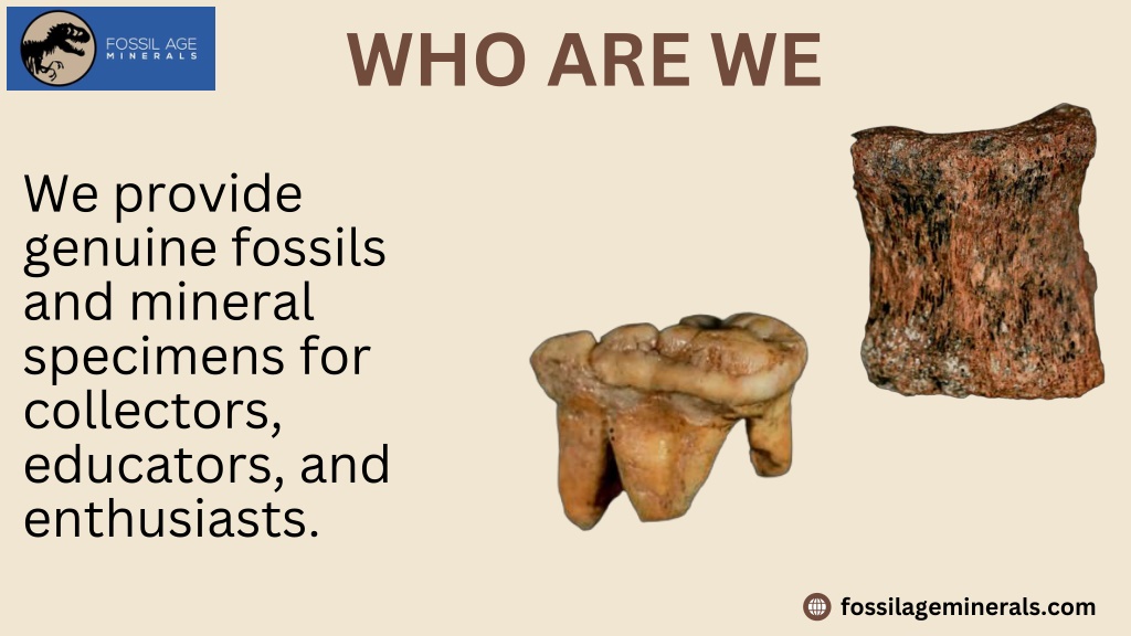 fossilageminerals.com WHO ARE WE We provide genuine fossils and mineral specimens for collectors, educators, and enthusiasts.