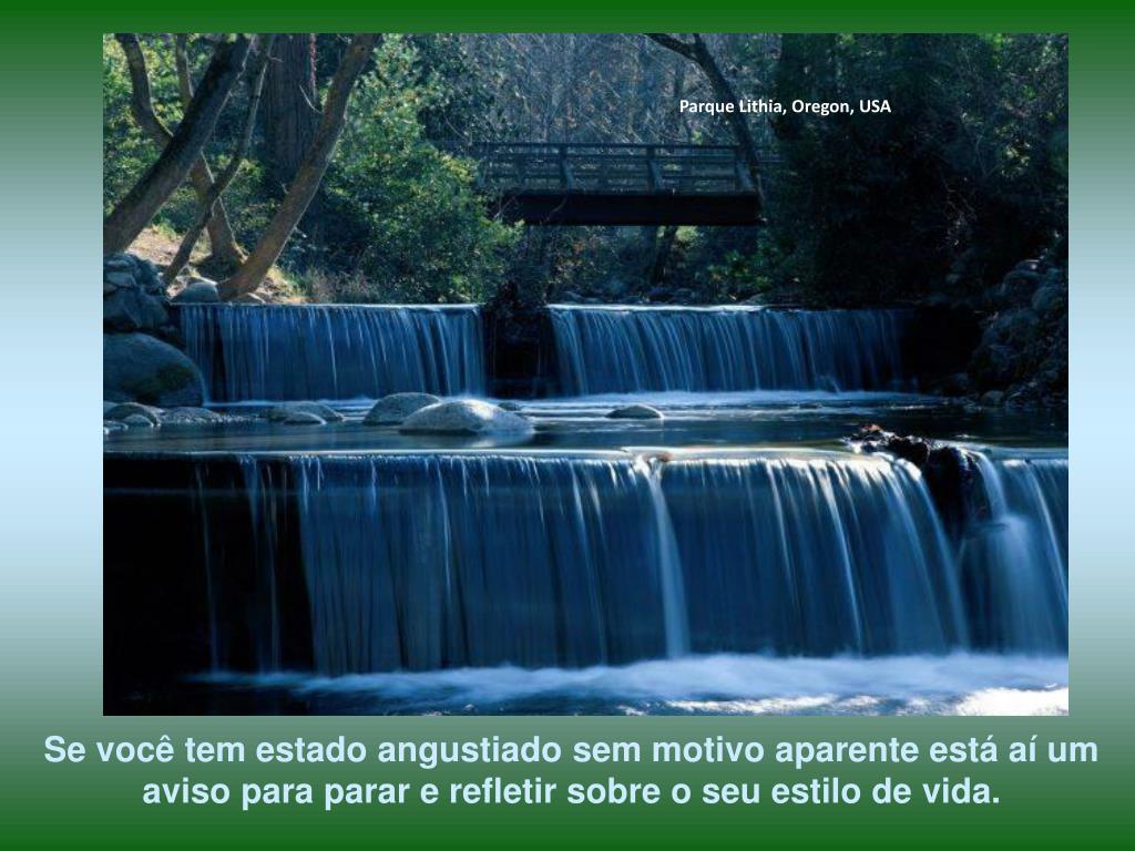 Parque Lithia, Oregon, USA Se você tem estado angustiado sem motivo aparente está aí um aviso para parar e refletir sobre o seu estilo de vida.