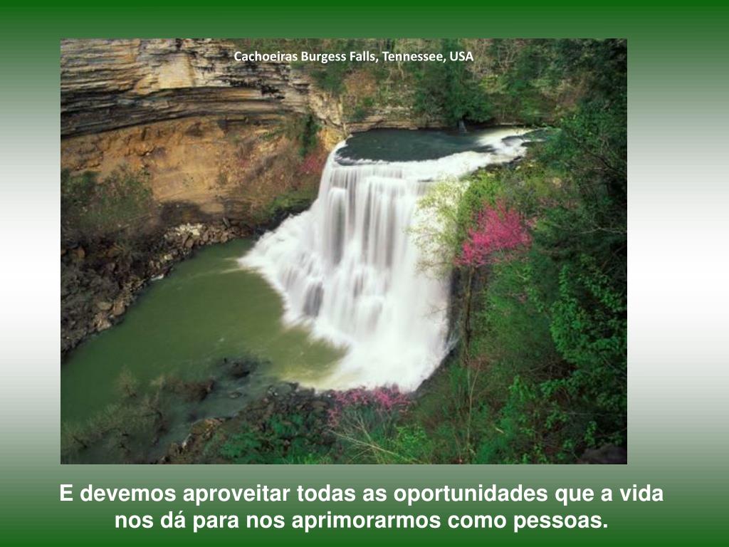 Cachoeiras Burgess Falls, Tennessee, USA E devemos aproveitar todas as oportunidades que a vida nos dá para nos aprimorarmos como pessoas.