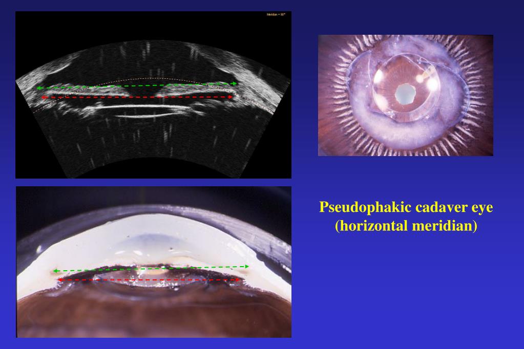 Phakic cadaver eye (horizontal meridian). Pseudophakic cadaver eye (horizontal meridian). Phakic anterior chamber lens: Vivarte ™. Patient of Dr. G. Baikoff, Marseille, France (Courtesy: S. Phillips, Ultralink). Phakic posterior chamber lens: PRL. Patient of Dr. H. Matamoros,