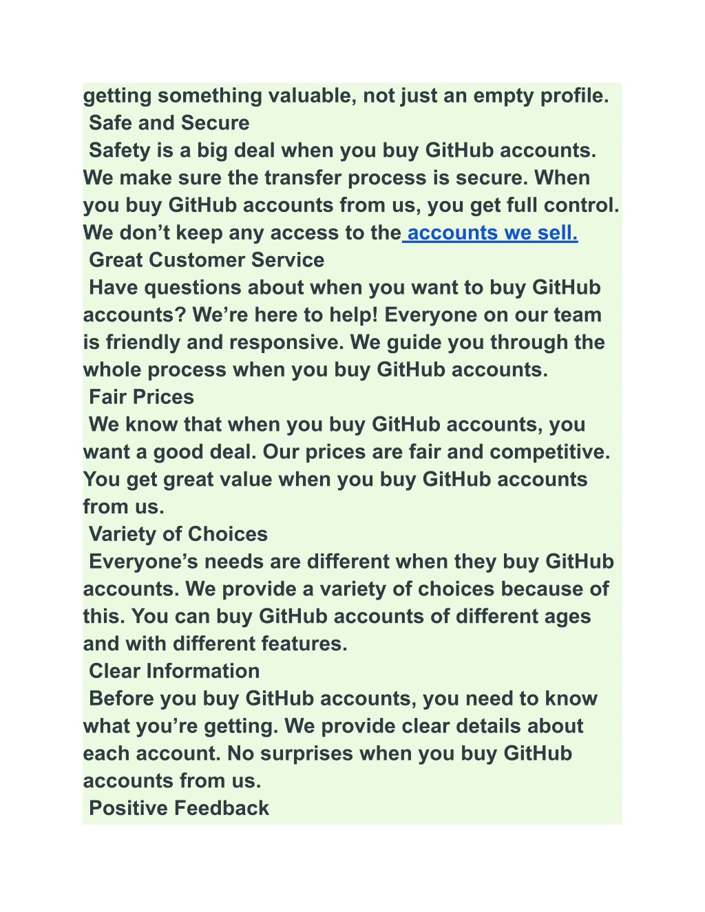 Why We’re the Best Choice to Buy GitHub Accounts Looking to buy GitHub accounts? You’ve come to the right place That is why we are your best bet when next you need GitHub accounts to buy. Top-Quality Accounts When you buy GitHub accounts from us, you get the best. Our accounts have real activity and history. They’re not fake or empty profiles. Easy to Buy We make it super simple to buy GitHub accounts. Just a few clicks, and you’re done! No complicated steps when you buy GitHub accounts here. Great Prices Want to buy GitHub accounts without spending too much? Our prices are fair and competitive. You get good value when you buy GitHub accounts from us. Fast Delivery No long waits when you buy GitHub accounts from us. We give you access to your new account quickly after you buy. Safe and Secure Worried about safety? Don’t be When you buy GitHub accounts from us, we make sure everything is secure. Your info stays safe. Lots of Choices Everyone’s different. That’s why we offer many