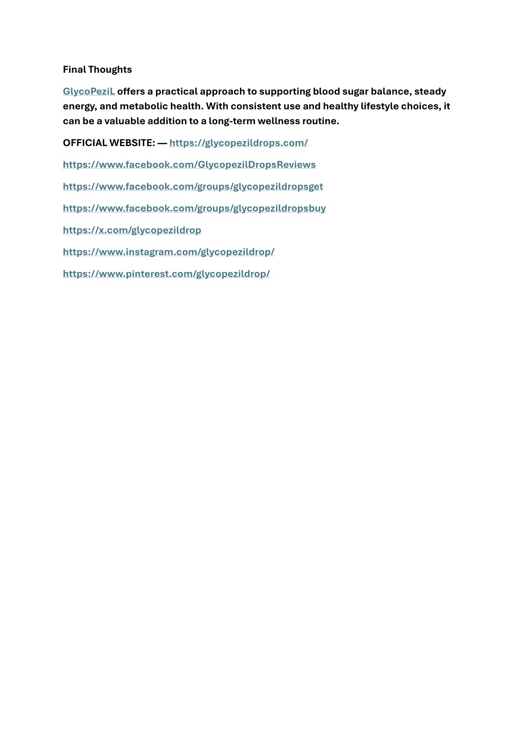 Final Thoughts GlycoPeziLoffers a practical approach to supporting blood sugar balance, steady energy, and metabolic health. With consistent use and healthy lifestyle choices, it can be a valuable addition to a long-term wellness routine. OFFICIAL WEBSITE: —https://glycopezildrops.com/ https://www.facebook.com/GlycopezilDropsReviews https://www.facebook.com/groups/glycopezildropsget https://www.facebook.com/groups/glycopezildropsbuy https://x.com/glycopezildrop https://www.instagram.com/glycopezildrop/ https://www.pinterest.com/glycopezildrop/