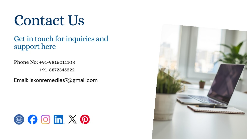 Contact Us Get in touch for inquiries and support here Phone No: +91-9816011108 +91-8872345222 Email: iskonremedies7@gmail.com
