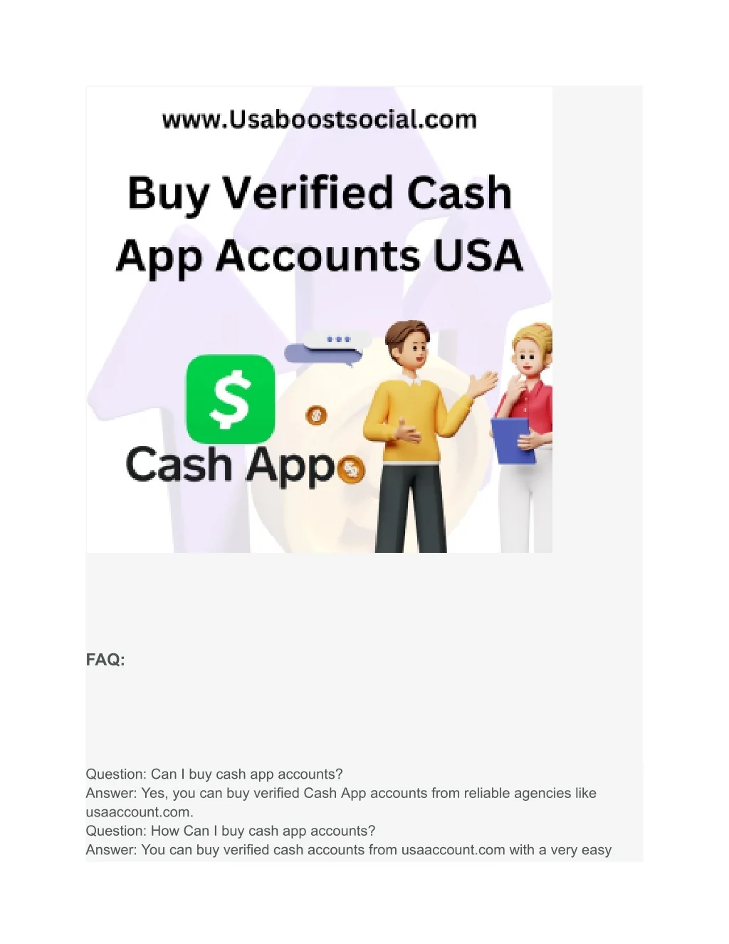 FAQ: Question: Can I buy cash app accounts? Answer: Yes, you can buy verified Cash App accounts from reliable agencies like usaaccount.com. Question: How Can I buy cash app accounts? Answer: You can buy verified cash accounts from usaaccount.com with a very easy