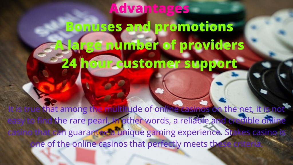 Advantages Bonuses and promotions A large number of providers 24 hour customer support It is true that among the multitude of online casinos on the net, it is not easy to find the rare pearl. In other words, a reliable and credible online casino that can guarantee a unique gaming experience. Stakes casino is one of the online casinos that perfectly meets these criteria.