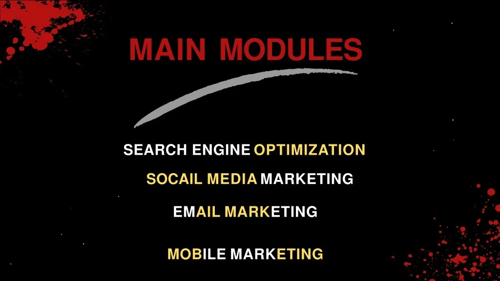 MAINMODULES SEARCH ENGINEOPTIMIZATION SOCAIL MEDIAMARKETING EMAILMARKETING MOBILEMARKETING