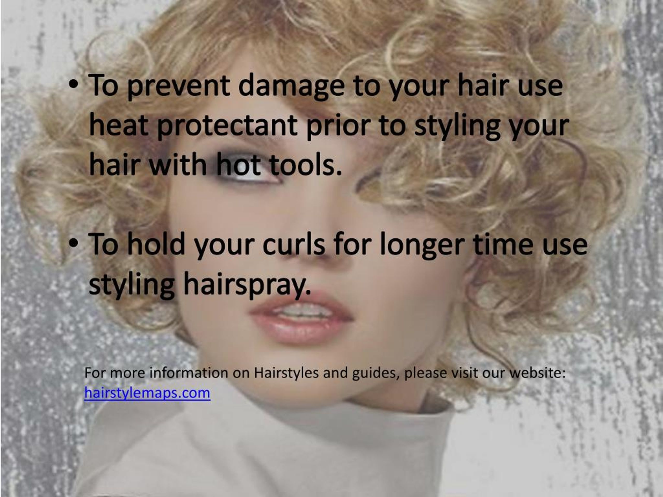 To prevent damage to your hair use heat protectant prior to styling your hair with hot tools. • To hold your curls for longer time use styling hairspray. For more information on Hairstyles and guides, please visit our website: hairstylemaps.com