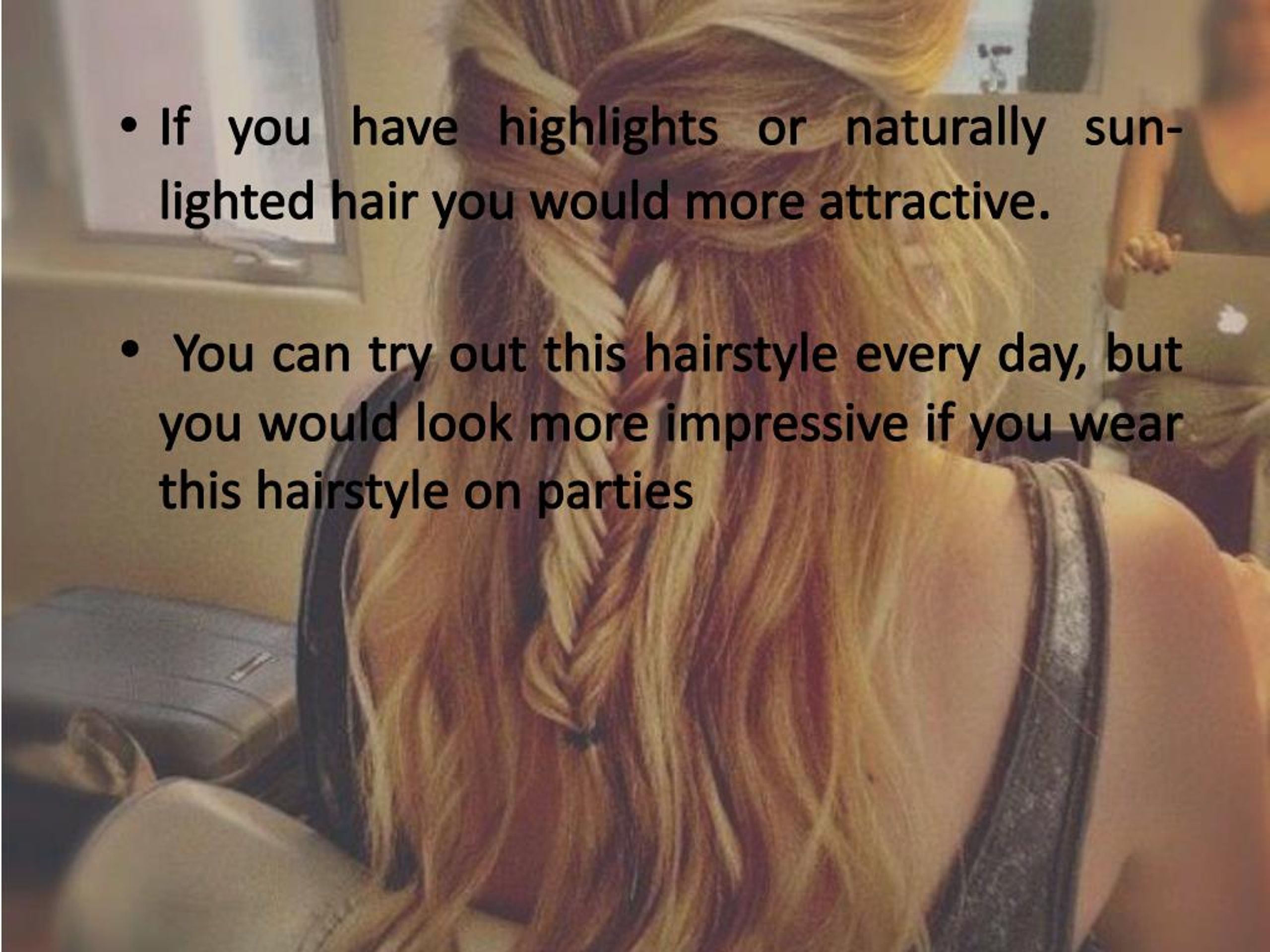 If you have highlights or naturally sun-lighted hair you would more attractive. • You can try out this hairstyle every day, but you would look more impressive if you wear this hairstyle on parties