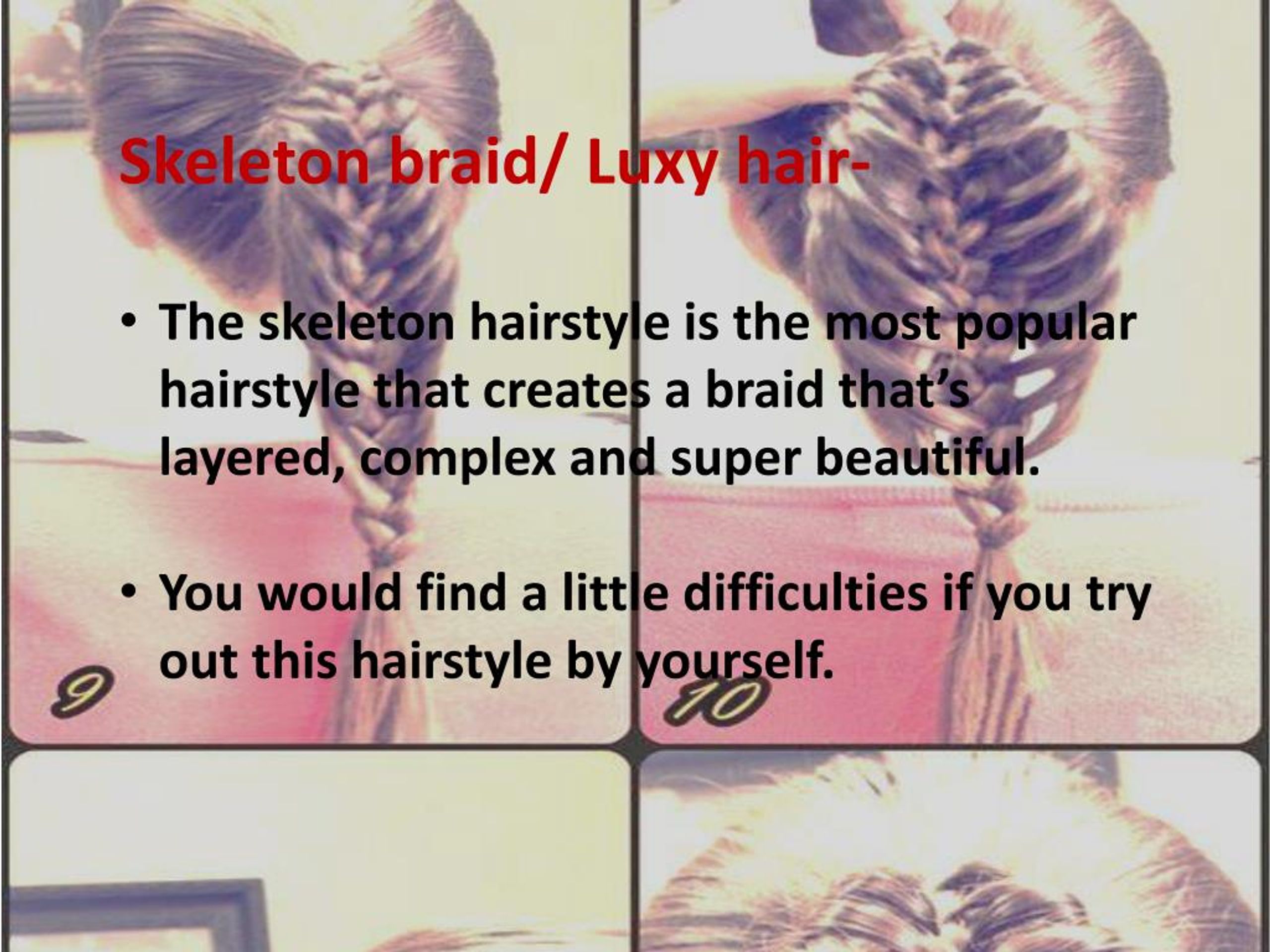 Skeleton braid/ Luxy hair- • The skeleton hairstyle is the most popular hairstyle that creates a braid that’s layered, complex and super beautiful. • You would find a little difficulties if you try out this hairstyle by yourself.