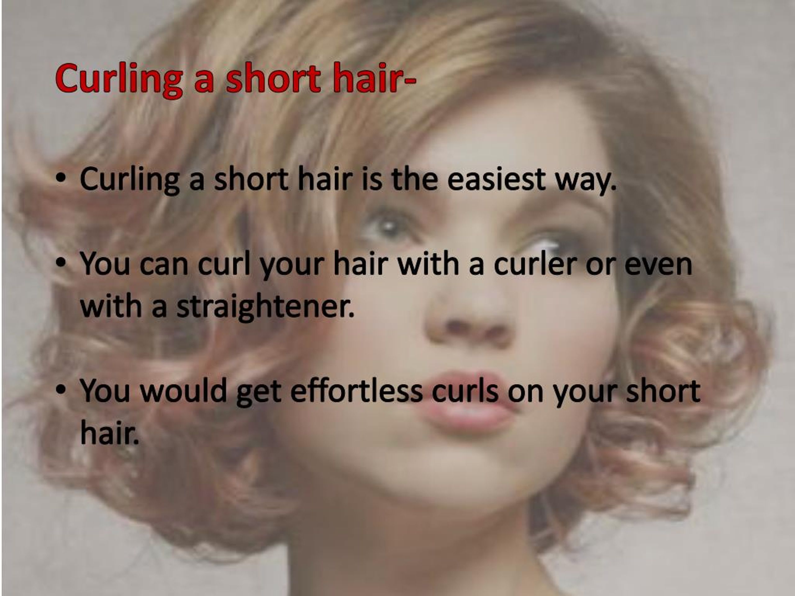 Curling a short hair- • Curling a short hair is the easiest way. • You can curl your hair with a curler or even with a straightener. • You would get effortless curls on your short hair.