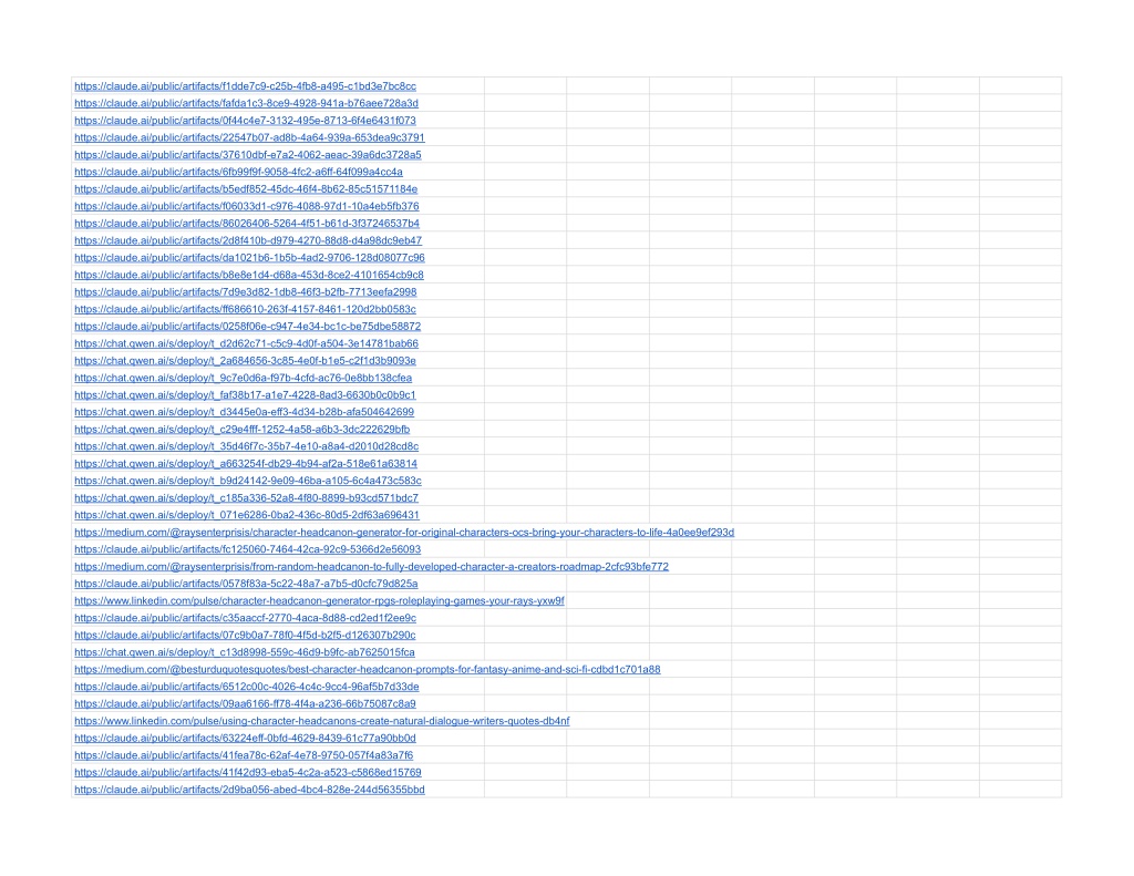 https://claude.ai/public/artifacts/f1dde7c9-c25b-4fb8-a495-c1bd3e7bc8cchttps://claude.ai/public/artifacts/f1dde7c9-c25b-4fb8-a495-c1bd3e7bc8cc https://claude.ai/public/artifacts/fafda1c3-8ce9-4928-941a-b76aee728a3d https://claude.ai/public/artifacts/0f44c4e7-3132-495e-8713-6f4e6431f073 https://claude.ai/public/artifacts/22547b07-ad8b-4a64-939a-653dea9c3791 https://claude.ai/public/artifacts/37610dbf-e7a2-4062-aeac-39a6dc3728a5 https://claude.ai/public/artifacts/6fb99f9f-9058-4fc2-a6ff-64f099a4cc4a https://claude.ai/public/artifacts/b5edf852-45dc-46f4-8b62-85c51571184e https://claude.ai/public/artifacts/f06033d1-c976-4088-97d1-10a4eb5fb376 https://claude.ai/public/artifacts/86026406-5264-4f51-b61d-3f37246537b4 https://claude.ai/public/artifacts/2d8f410b-d979-4270-88d8-d4a98dc9eb47 https://claude.ai/public/artifacts/da1021b6-1b5b-4ad2-9706-128d08077c96 https://claude.ai/public/artifacts/b8e8e1d4-d68a-453d-8ce2-4101654cb9c8 https://claude.ai/public/artifacts/7d9e3d82-1db8-46f3-b2fb-7713eefa2998 https://claude.ai/public/artifacts/ff686610-263f-4157-8461-120d2bb0583c https://claude.ai/public/artifacts/0258f06e-c947-4e34-bc1c-be75dbe58872 https://chat.qwen.ai/s/deploy/t_d2d62c71-c5c9-4d0f-a504-3e14781bab66 https://chat.qwen.ai/s/deploy/t_2a684656-3c85-4e0f-b1e5-c2f1d3b9093e https://chat.qwen.ai/s/deploy/t_9c7e0d6a-f97b-4cfd-ac76-0e8bb138cfea https://chat.qwen.ai/s/deploy/t_faf38b17-a1e7-4228-8ad3-6630b0c0b9c1 https://chat.qwen.ai/s/deploy/t_d3445e0a-eff3-4d34-b28b-afa504642699 https://chat.qwen.ai/s/deploy/t_c29e4fff-1252-4a58-a6b3-3dc222629bfb https://chat.qwen.ai/s/deploy/t_35d46f7c-35b7-4e10-a8a4-d2010d28cd8c https://chat.qwen.ai/s/deploy/t_a663254f-db29-4b94-af2a-518e61a63814 https://chat.qwen.ai/s/deploy/t_b9d24142-9e09-46ba-a105-6c4a473c583c https://chat.qwen.ai/s/deploy/t_c185a336-52a8-4f80-8899-b93cd571bdc7 https://chat.qwen.ai/s/deploy/t_071e6286-0ba2-436c-80d5-2df63a696431 https://medium.com/@raysenterprisis/character-headcanon-generator-for-original-characters-ocs-bring-your-characters-to-life-4a0ee9ef293d https://claude.ai/public/artifacts/fc125060-7464-42ca-92c9-5366d2e56093 https://medium.com/@raysenterprisis/from-random-headcanon-to-fully-developed-character-a-creators-roadmap-2cfc93bfe772 https://claude.ai/public/artifacts/0578f83a-5c22-48a7-a7b5-d0cfc79d825a https://www.linkedin.com/pulse/character-headcanon-generator-rpgs-roleplaying-games-your-rays-yxw9f https://claude.ai/public/artifacts/c35aaccf-2770-4aca-8d88-cd2ed1f2ee9c https://claude.ai/public/artifacts/07c9b0a7-78f0-4f5d-b2f5-d126307b290c https://chat.qwen.ai/s/deploy/t_c13d8998-559c-46d9-b9fc-ab7625015fca https://medium.com/@besturduquotesquotes/best-character-headcanon-prompts-for-fantasy-anime-and-sci-fi-cdbd1c701a88 https://claude.ai/public/artifacts/6512c00c-4026-4c4c-9cc4-96af5b7d33de https://claude.ai/public/artifacts/09aa6166-ff78-4f4a-a236-66b75087c8a9 https://www.linkedin.com/pulse/using-character-headcanons-create-natural-dialogue-writers-quotes-db4nf https://claude.ai/public/artifacts/63224eff-0bfd-4629-8439-61c77a90bb0d https://claude.ai/public/artifacts/41fea78c-62af-4e78-9750-057f4a83a7f6 https://claude.ai/public/artifacts/41f42d93-eba5-4c2a-a523-c5868ed15769 https://claude.ai/public/artifacts/2d9ba056-abed-4bc4-828e-244d56355bbd