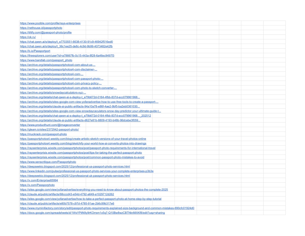 https://www.pozible.com/profile/rays-enterprises https://nethouse.id/passportphoto https://tiltify.com/@passport-photo/profile https://ok.ru/ https://chat.qwen.ai/s/deploy/t_e7703551-6638-4130-91c9-46942f516ed0 https://chat.qwen.ai/s/deploy/t_36c1ee25-de8c-4c9d-9b99-4073482e42fb https://b.io/Passportport https://theexplorers.com/user?id=a78667fb-0c15-443a-8f28-6a46ec9497f3 https://www.bandlab.com/passport_photo https://archive.org/details/passportphotos4-com-about-us-... https://archive.org/details/passportphotos4-com-disclaimer-... https://archive.org/details/passportphotos4-com-... https://archive.org/details/passportphotos4-com-passport-photo-... https://archive.org/details/passportphotos4-com-privacy-policy-... https://archive.org/details/passportphotos4-com-photo-to-sketch-converter-... https://archive.org/details/snowdaycalculators-xyz-... https://archive.org/details/chat-qwen-ai-s-deploy-t_e79b672d-0164-4fbb-837d-ecc079961968... https://archive.org/details/sites-google-com-view-yofanadvertise-how-to-use-free-tools-to-create-a-passport-... https://archive.org/details/claude-ai-public-artifacts-94a10a78-e86f-4ae2-9bf5-ba2eb0361030... https://archive.org/details/sites-google-com-view-snowdaycaculators-snow-day-predictor-your-ultimate-guide-t... https://archive.org/details/chat-qwen-ai-s-deploy-t_e79b672d-0164-4fbb-837d-ecc079961968..._202512 https://archive.org/details/claude-ai-public-artifacts-d627e81b-8809-4193-b48b-96dcebe3f059... https://www.producthunt.com/@imageconverter https://gleam.io/sites/2372942-passport-photo/ https://muckrack.com/passport-photo https://passportphotos4.weebly.com/blog/create-artistic-sketch-versions-of-your-travel-photos-online https://passportphotos4.weebly.com/blog/sketchify-your-world-how-ai-converts-photos-into-drawings https://raysenterprisis.wixsite.com/passportphotos/post/passport-photo-requirements-for-international-travel https://raysenterprisis.wixsite.com/passportphotos/post/tips-for-taking-the-perfect-passport-photo https://raysenterprisis.wixsite.com/passportphotos/post/common-passport-photo-mistakes-to-avoid https://www.senscritique.com/Passportphoto https://deepseekio.blogspot.com/2025/12/professional-us-passport-photo-services.html https://www.linkedin.com/pulse/professional-us-passport-photo-services-your-complete-enterprises-p3b3e https://deepseekio.blogspot.com/2025/12/professional-uk-passport-photo-services.html https://x.com/Enterprise65994 https://x.com/Passporphoto https://sites.google.com/view/yofanadvertise/everything-you-need-to-know-about-passport-photos-the-complete-2025 https://claude.ai/public/artifacts/68cccd43-e54d-4792-a649-a1029712d262 https://sites.google.com/view/yofanadvertise/how-to-take-a-perfect-passport-photo-at-home-step-by-step-tutorial https://claude.ai/public/artifacts/e80b7578-c97d-4785-91ae-2b6c99b317e6 https://www.myminifactory.com/story/edit/passport-photo-requirements-explained-size-background-and-common-mistakes-690cfc01924d0 https://docs.google.com/spreadsheets/d/1WsYPtlN9y9rKOrrsm1x5q7-Q10Bw8wzCBTNkriMXKf8/edit?usp=sharing