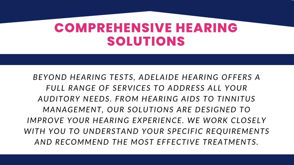 COMPREHENSIVE HEARING SOLUTIONS BEYOND HEARING TESTS, ADELAIDE HEARING OFFERS A FULL RANGE OF SERVICES TO ADDRESS ALL YOUR AUDITORY NEEDS. FROM HEARING AIDS TO TINNITUS MANAGEMENT, OUR SOLUTIONS ARE DESIGNED TO IMPROVE YOUR HEARING EXPERIENCE. WE WORK CLOSELY WITH YOU TO UNDERSTAND YOUR SPECIFIC REQUIREMENTS AND RECOMMEND THE MOST EFFECTIVE TREATMENTS.