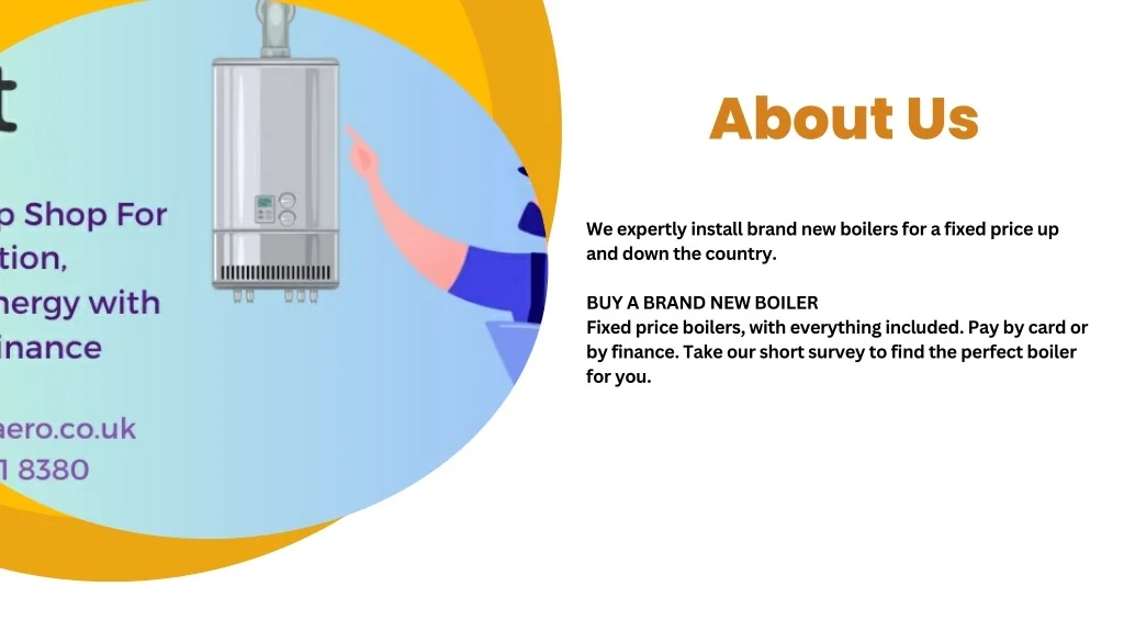 About Us We expertly install brand new boilers for a fixed price up and down the country. BUY A BRAND NEW BOILER Fixed price boilers, with everything included. Pay by card or by finance. Take our short survey to find the perfect boiler for you.