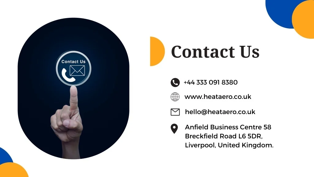 Contact Us +44 333 091 8380 www.heataero.co.uk hello@heataero.co.uk Anfield Business Centre 58 Breckfield Road L6 5DR, Liverpool, United Kingdom.