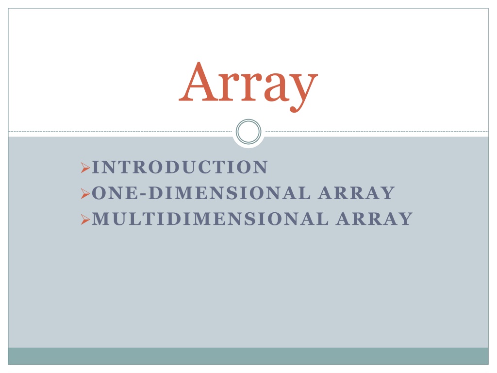 Array INTRODUCTION ONE-DIMENSIONAL ARRAY MULTIDIMENSIONAL ARRAY