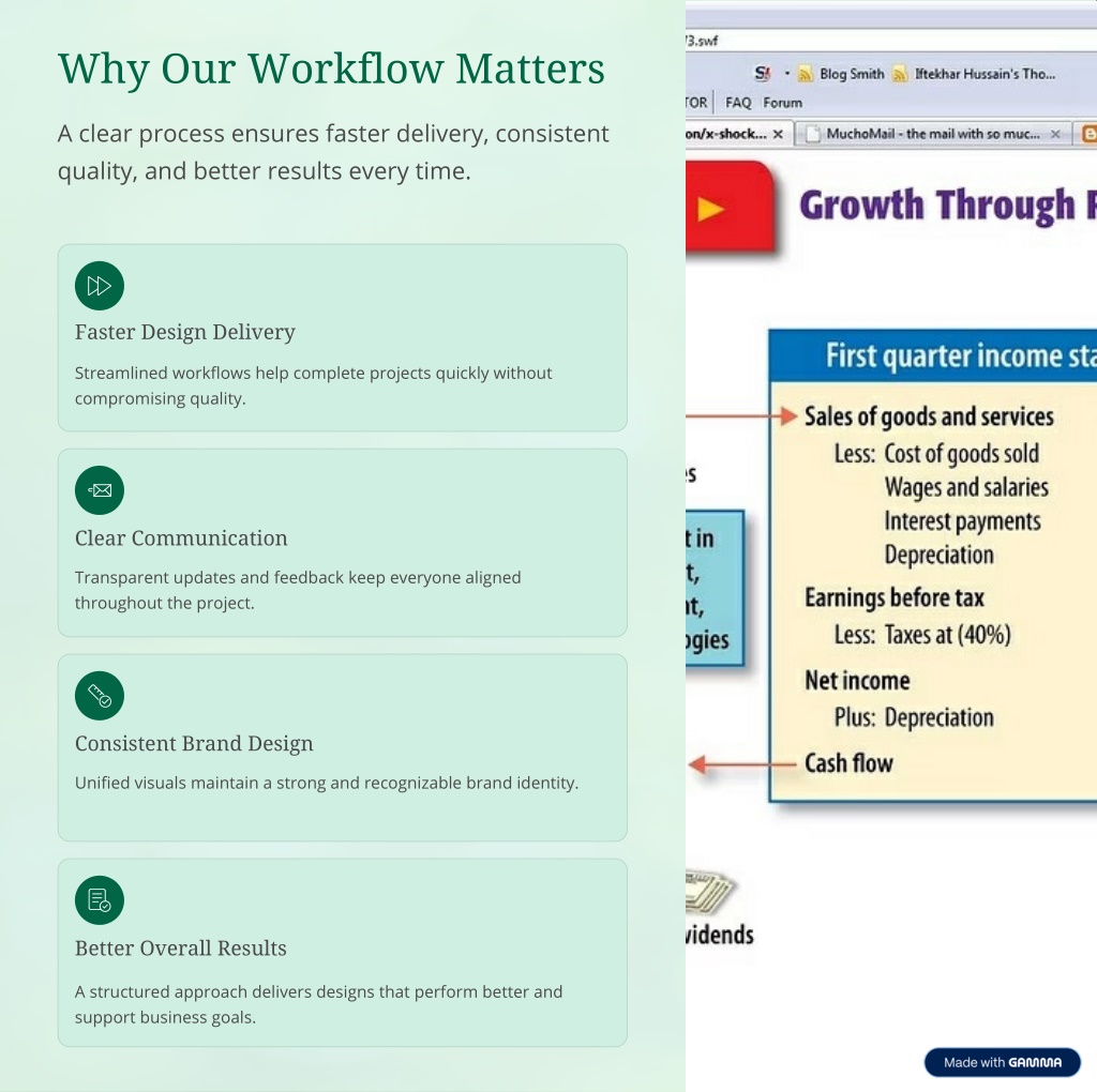 9. Why Our Workflow Matters A clear process ensures faster delivery, consistent quality, and better results every time. Faster Design Delivery Streamlined workflows help complete projects quickly without compromising quality. Clear Communication Transparent updates and feedback keep everyone aligned throughout the project. Consistent Brand Design Unified visuals maintain a strong and recognizable brand identity. Better Overall Results A structured approach delivers designs that perform better and support business goals.