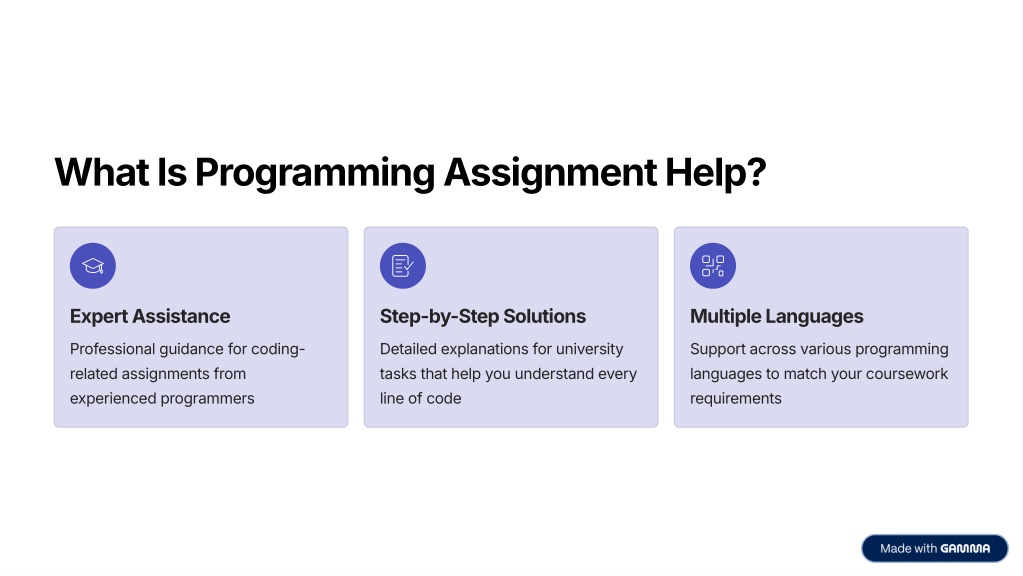 What Is Programming Assignment Help? Expert Assistance Step-by-Step Solutions Multiple Languages Professional guidance for coding- related assignments from experienced programmers Detailed explanations for university tasks that help you understand every line of code Support across various programming languages to match your coursework requirements