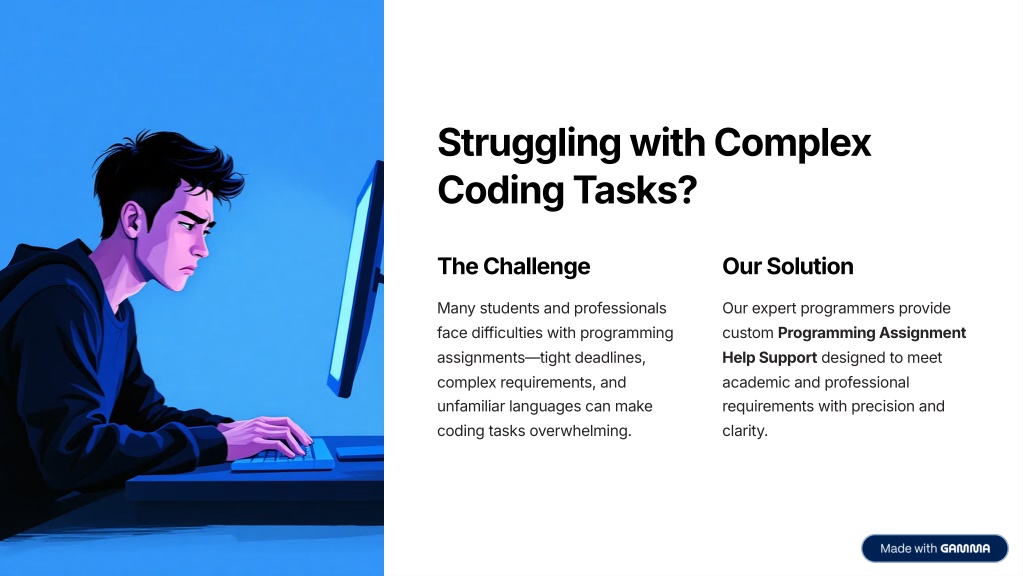 2. Struggling with Complex Coding Tasks? The Challenge Our Solution Many students and professionals face difficulties with programming assignments4tight deadlines, complex requirements, and unfamiliar languages can make coding tasks overwhelming. Our expert programmers provide custom Programming Assignment Help Support designed to meet academic and professional requirements with precision and clarity.