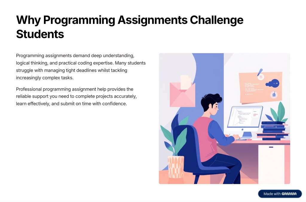 Why Programming Assignments Challenge Students Programming assignments demand deep understanding, logical thinking, and practical coding expertise. Many students struggle with managing tight deadlines whilst tackling increasingly complex tasks. Professional programming assignment help provides the reliable support you need to complete projects accurately, learn effectively, and submit on time with confidence.