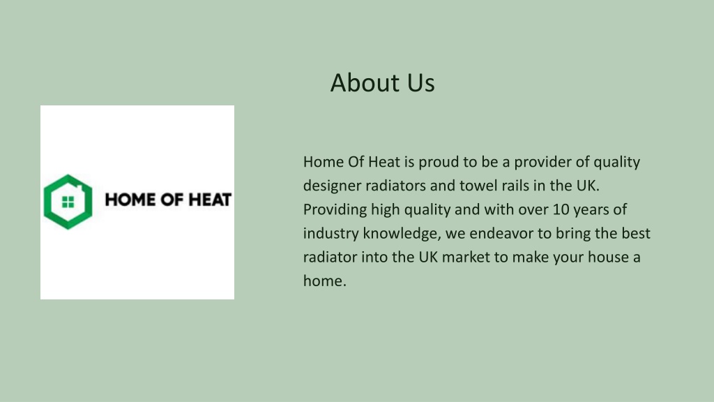 About Us Home Of Heat is proud to be a provider of quality designer radiators and towel rails in the UK. Providing high quality and with over 10 years of industry knowledge, we endeavor to bring the best radiator into the UK market to make your house a home.