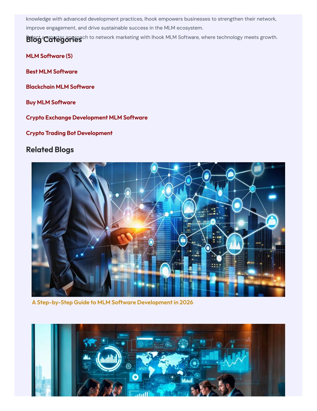 knowledge with advanced development practices, Ihook empowers businesses to strengthen their network, improve engagement, and drive sustainable success in the MLM ecosystem. Blog Categories Select a smarter approach to network marketing with Ihook MLM Software, where technology meets growth. MLM Software (5) Best MLM Software Blackchain MLM Software Buy MLM Software Crypto Exchange Development MLM Software Crypto Trading Bot Development Related Blogs A Step-by-Step Guide to MLM Software Development in 2026