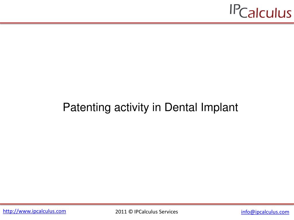 Patenting activity in Dental Implant http://www.ipcalculus.com 2011 © IPCalculus Services info@ipcalculus.com