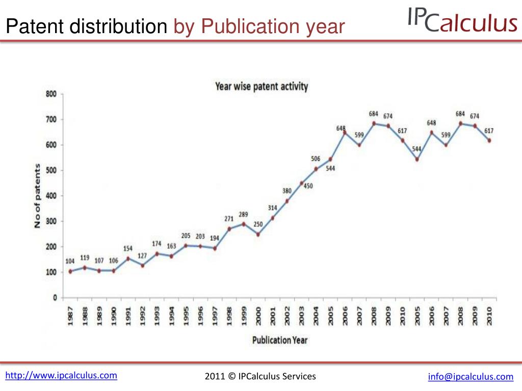 Patent distribution by Publication year http://www.ipcalculus.com 2011 © IPCalculus Services info@ipcalculus.com