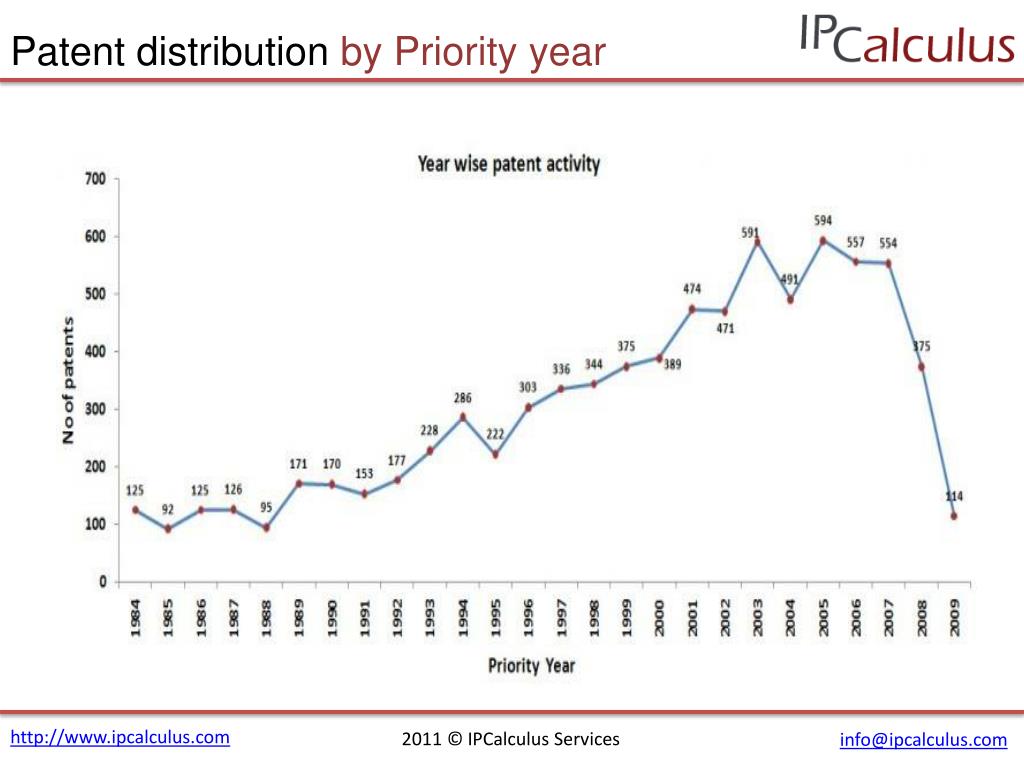Issued and Published Patent Distribution by Priority year http://www.ipcalculus.com 2011 © IPCalculus Services info@ipcalculus.com