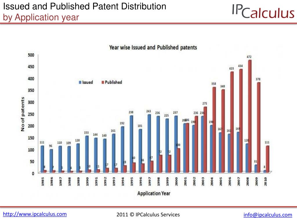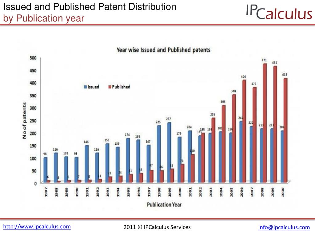 Issued and Published Patent Distribution by Publication year http://www.ipcalculus.com 2011 © IPCalculus Services info@ipcalculus.com