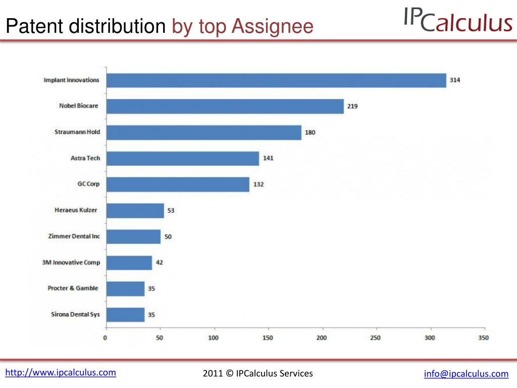 Patent distribution by top Assignee http://www.ipcalculus.com 2011 © IPCalculus Services info@ipcalculus.com
