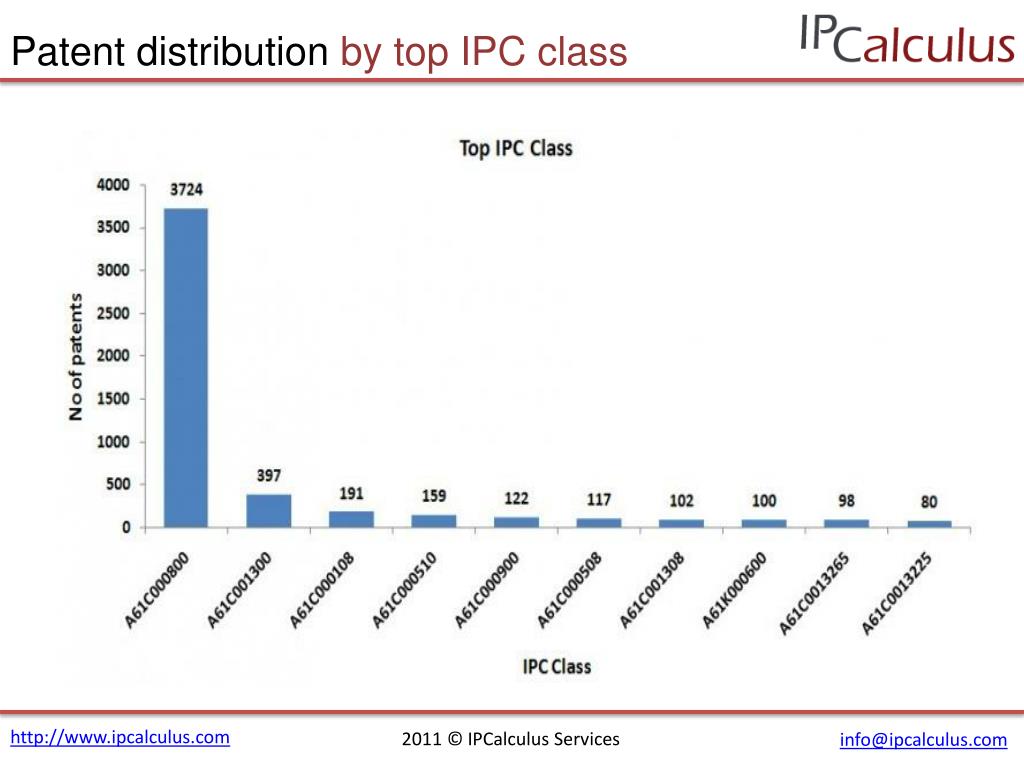 Patent distribution by top IPC class http://www.ipcalculus.com 2011 © IPCalculus Services info@ipcalculus.com
