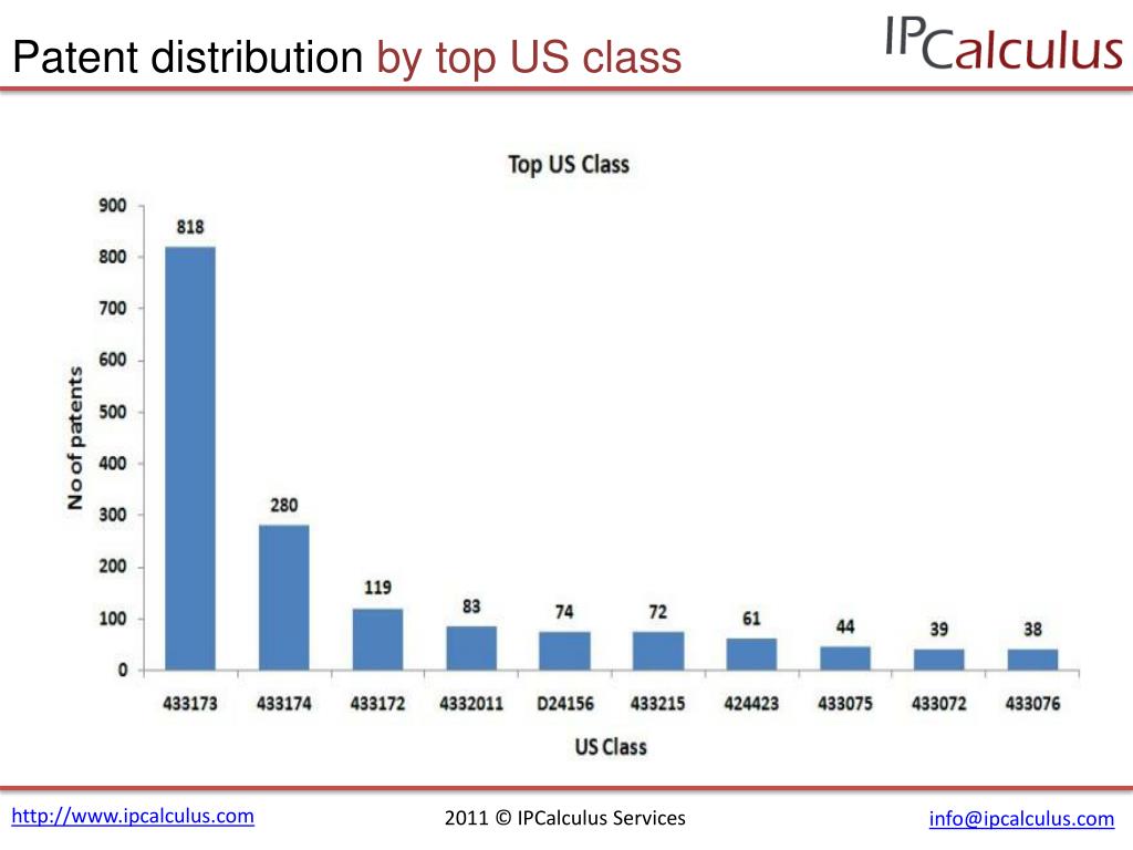 Patent distribution by top US class http://www.ipcalculus.com 2011 © IPCalculus Services info@ipcalculus.com