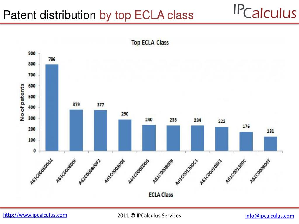 Patent distribution by top ECLA class http://www.ipcalculus.com 2011 © IPCalculus Services info@ipcalculus.com
