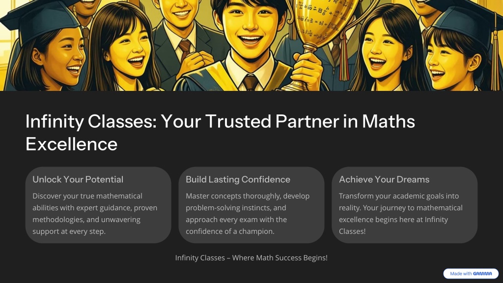 Infinity Classes: Your Trusted Partner in Maths Excellence Unlock Your Potential Build Lasting Confidence Achieve Your Dreams Discover your true mathematical abilities with expert guidance, proven methodologies, and unwavering support at every step. Master concepts thoroughly, develop problem-solving instincts, and approach every exam with the confidence of a champion. Transform your academic goals into reality. Your journey to mathematical excellence begins here at Infinity Classes! Infinity Classes – Where Math Success Begins!