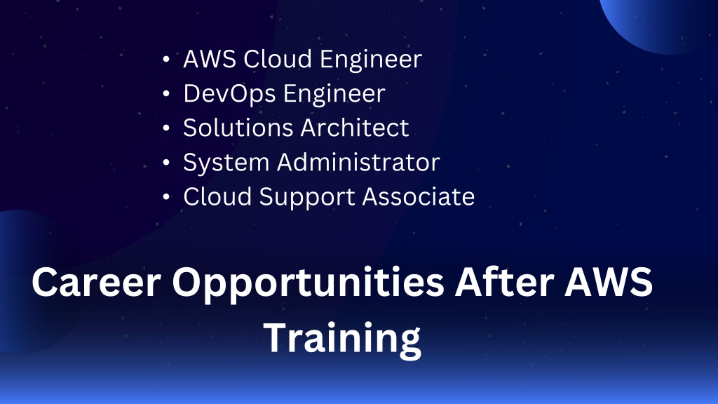 10. AWS Cloud Engineer • DevOps Engineer • Solutions Architect • System Administrator • Cloud Support Associate Career Opportunities After AWS Training