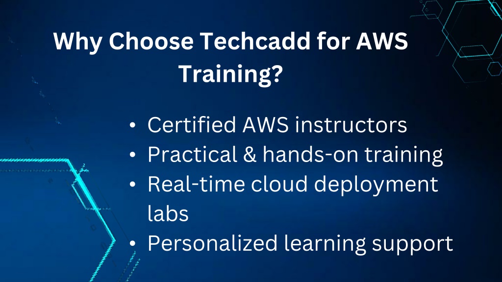 4. Why Choose Techcadd for AWS Training? • Certified AWS instructors • Practical & hands-on training • Real-time cloud deployment labs • Personalized learning support