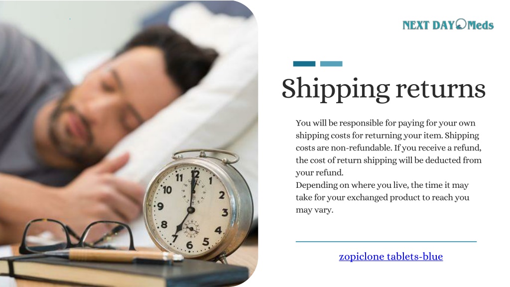 Shipping returns You will be responsible for paying for your own shipping costs for returning your item. Shipping costs are non-refundable. If you receive a refund, the cost of return shipping will be deducted from your refund. Depending on where you live, the time it may take for your exchanged product to reach you may vary. zopiclone tablets-blue