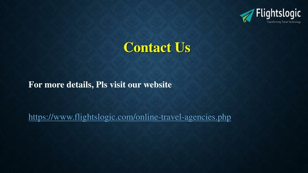 Contact Us For more details, Pls visit our website https://www.flightslogic.com/online-travel-agencies.php