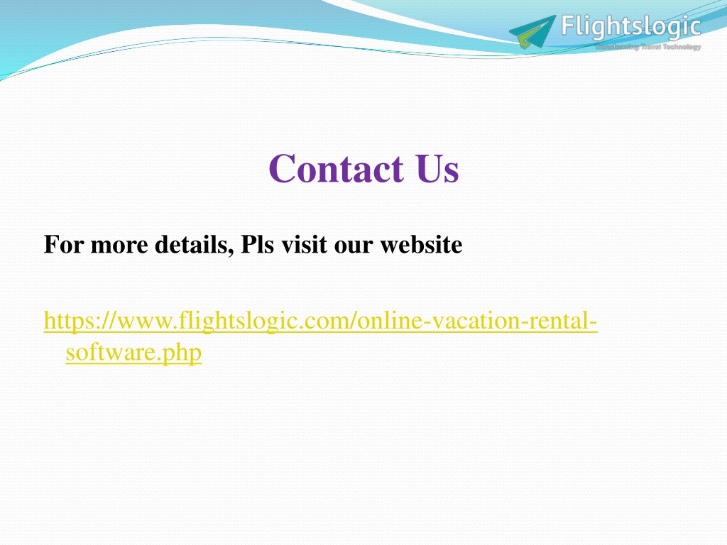 Contact Us For more details, Pls visit our website https://www.flightslogic.com/online-vacation-rental-software.php
