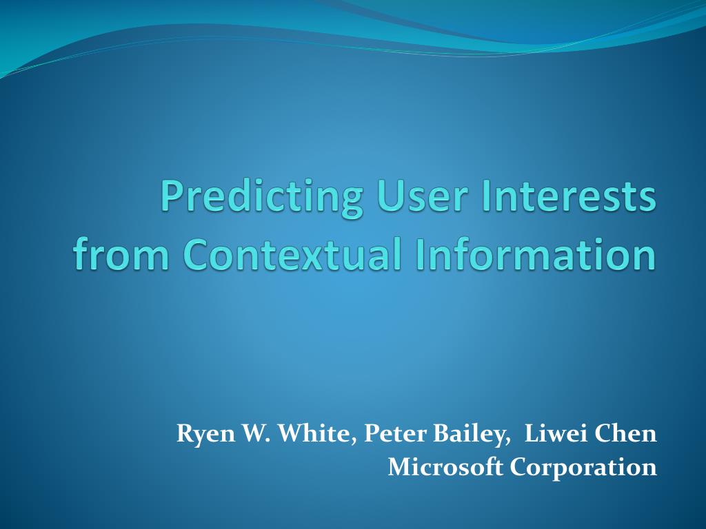 Predicting User Interests from Contextual Information Ryen W. White, Peter Bailey, Liwei Chen Microsoft Corporation