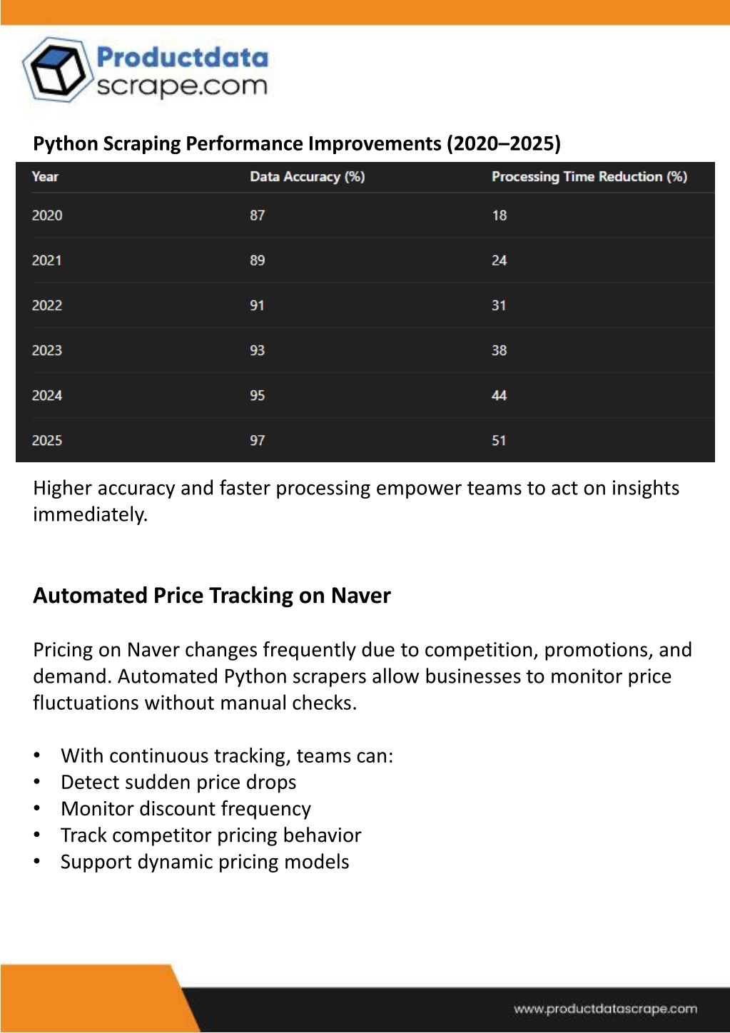 7. Impact of Image Search on Conversions (2020–2025) Visual data extraction enables smarter creative decisions and stronger brand positioning. Python Automation for Accurate Data Extraction Python remains the most reliable language for scraping complex platforms like Naver. Libraries such as Requests, BeautifulSoup, and Selenium handle: • • • • Dynamic content rendering Pagination and filters JavaScript-heavy pages Data validation and normalization