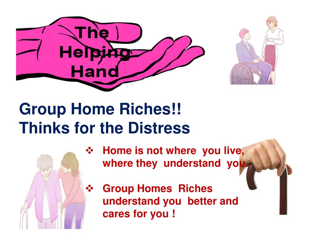 Group Home Riches!! Thinks for the Distress • Home is not where you live, where they understand you. • Group Homes Riches understand you better and cares for you !