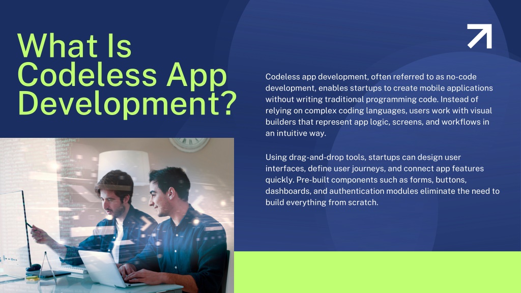 Codeless app development is transforming how startups build and scale mobile applications. This presentation explains how no-code platforms help startups launch apps faster, reduce development costs, and validate ideas quickly without complex coding. Discover why codeless mobile app development is a game-changer for startup growth, MVP creation, and rapid innovation in todayu2019s competitive digital landscape.