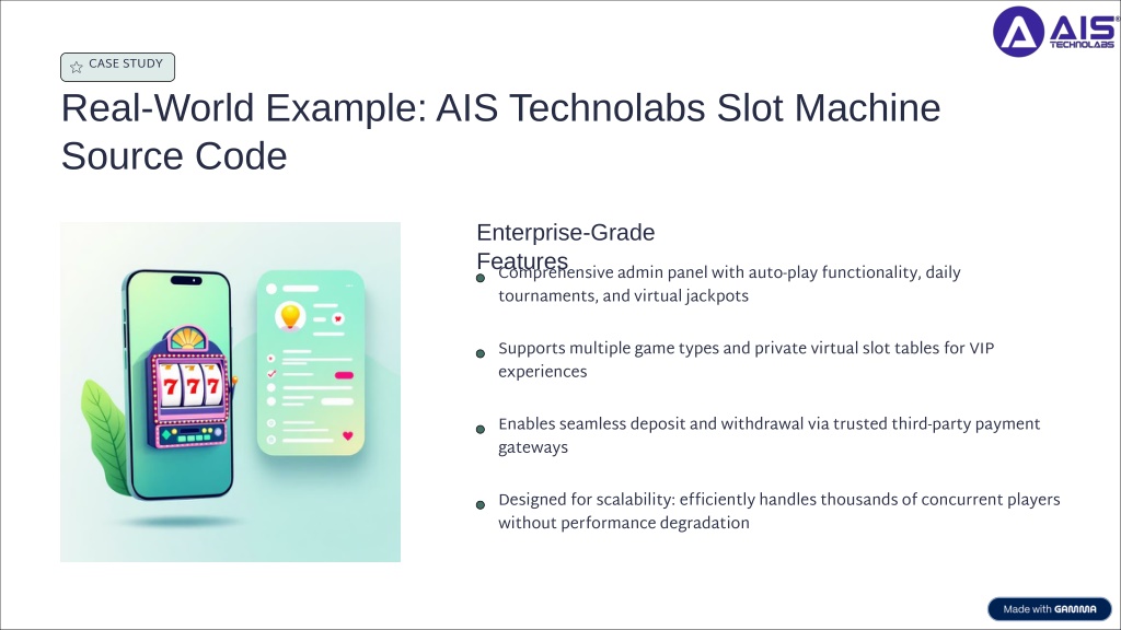 This presentation explains how Slot Machine Android Source Code is used in Android app development. It covers core components, UI structure, logic handling, and customization options. The PPT is designed to help developers and businesses understand how ready-made source code can streamline Android app creation.