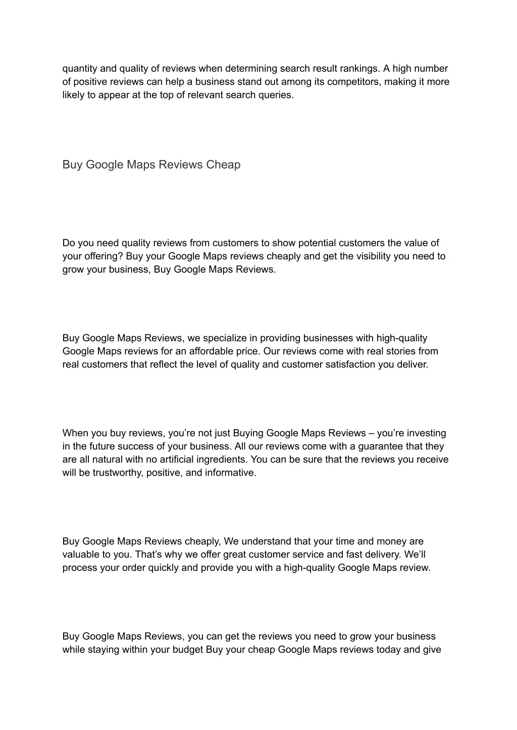 quantity and quality of reviews when determining search result rankings. A high number of positive reviews can help a business stand out among its competitors, making it more likely to appear at the top of relevant search queries. Buy Google Maps Reviews Cheap Do you need quality reviews from customers to show potential customers the value of your offering? Buy your Google Maps reviews cheaply and get the visibility you need to grow your business, Buy Google Maps Reviews. Buy Google Maps Reviews, we specialize in providing businesses with high-quality Google Maps reviews for an affordable price. Our reviews come with real stories from real customers that reflect the level of quality and customer satisfaction you deliver. When you buy reviews, you’re not just Buying Google Maps Reviews – you’re investing in the future success of your business. All our reviews come with a guarantee that they are all natural with no artificial ingredients. You can be sure that the reviews you receive will be trustworthy, positive, and informative. Buy Google Maps Reviews cheaply, We understand that your time and money are valuable to you. That’s why we offer great customer service and fast delivery. We’ll process your order quickly and provide you with a high-quality Google Maps review. Buy Google Maps Reviews, you can get the reviews you need to grow your business while staying within your budget Buy your cheap Google Maps reviews today and give