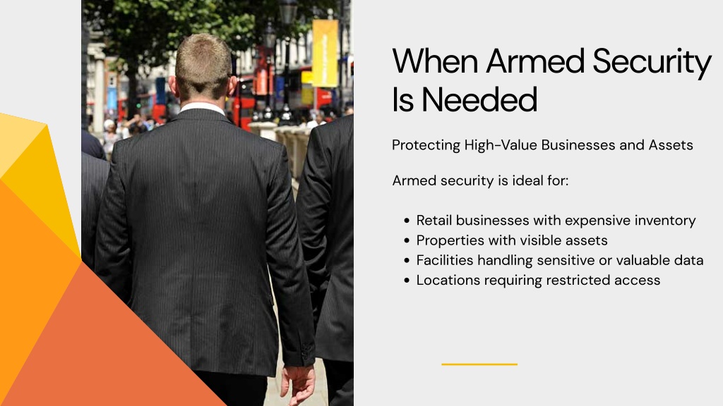When Armed Security Is Needed Protecting High-Value Businesses and Assets Armed security is ideal for: Retail businesses with expensive inventory Properties with visible assets Facilities handling sensitive or valuable data Locations requiring restricted access