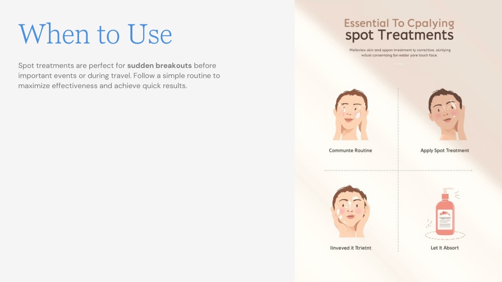 When to Use • Spot treatments are perfect for sudden breakouts before important events or during travel. Follow a simple routine to maximize effectiveness and achieve quick results.