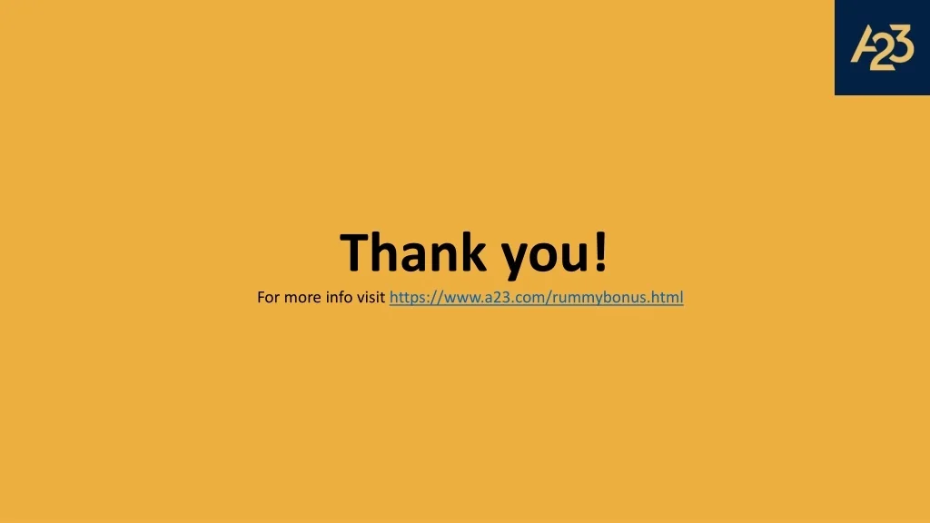 Thank you! For more info visit https://www.a23.com/rummybonus.html