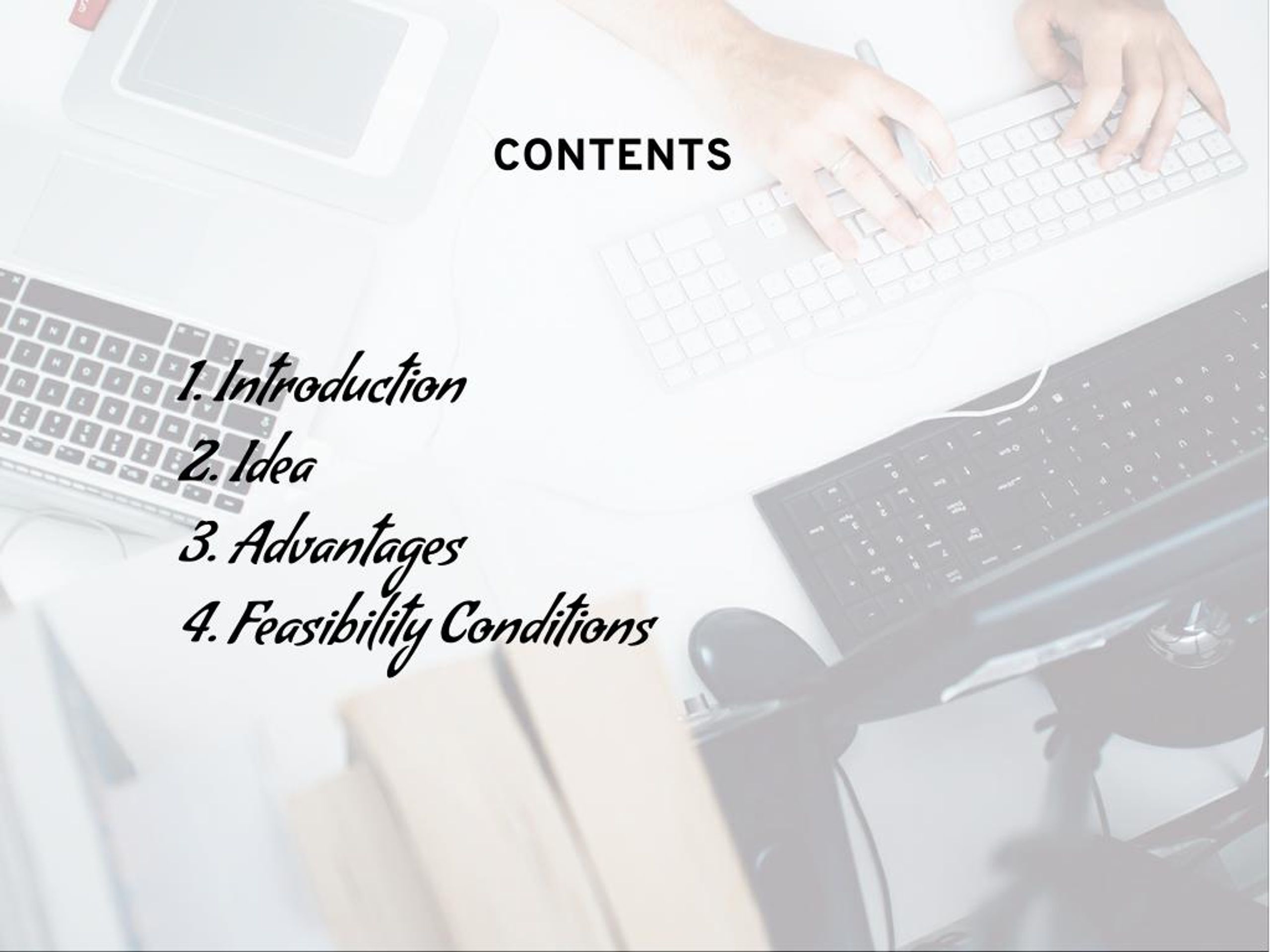 2. CONTENTS 1. Introduction 2. Idea 3. Advantages 4. Feasibility Conditions